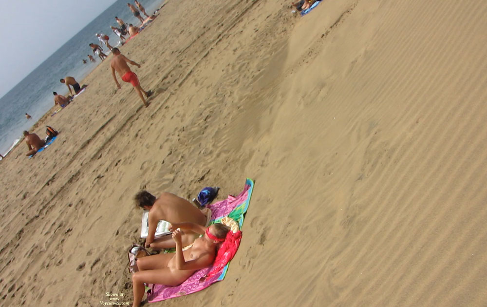 This cute blonde was sunning herself with her boyfriend in the sandunes of Maspolomas, near Meloneras. She looked like she did not make a habit of nude sunbathing. Nice body!