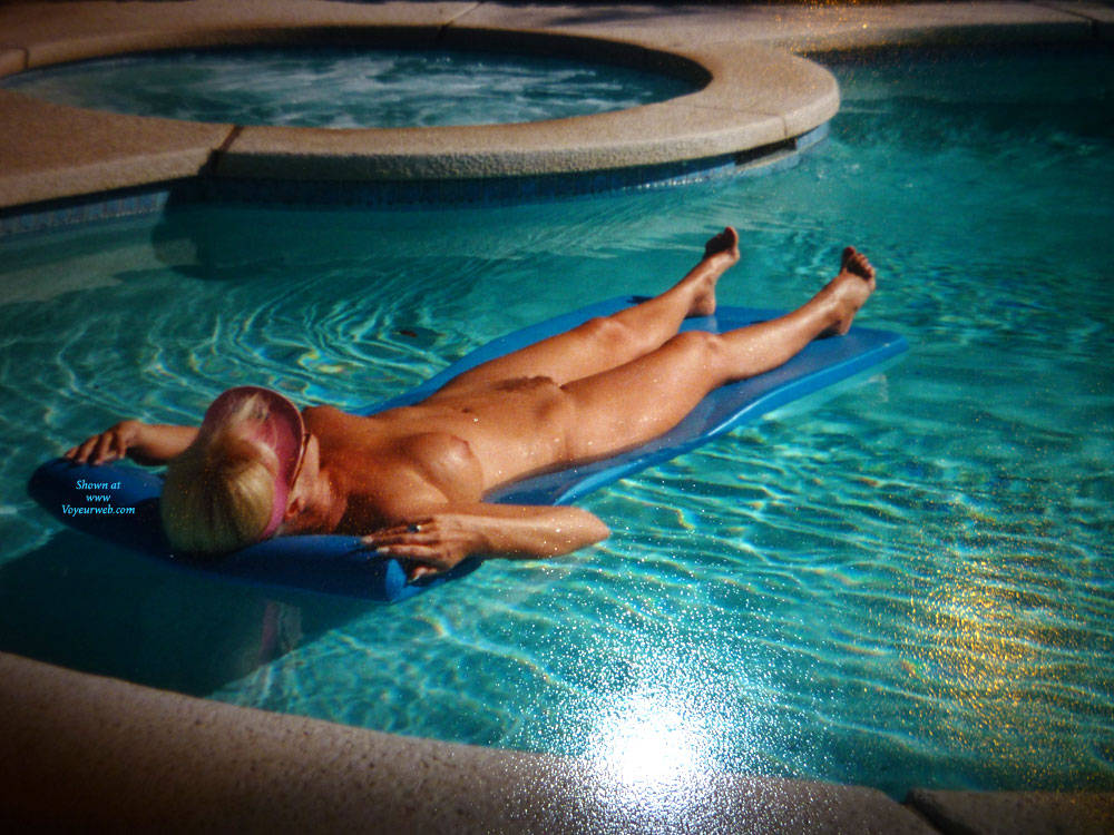This lady rents our backyard guest house; she has pool/spa/etc privileges anytime. Not too bad for 55 years old..
